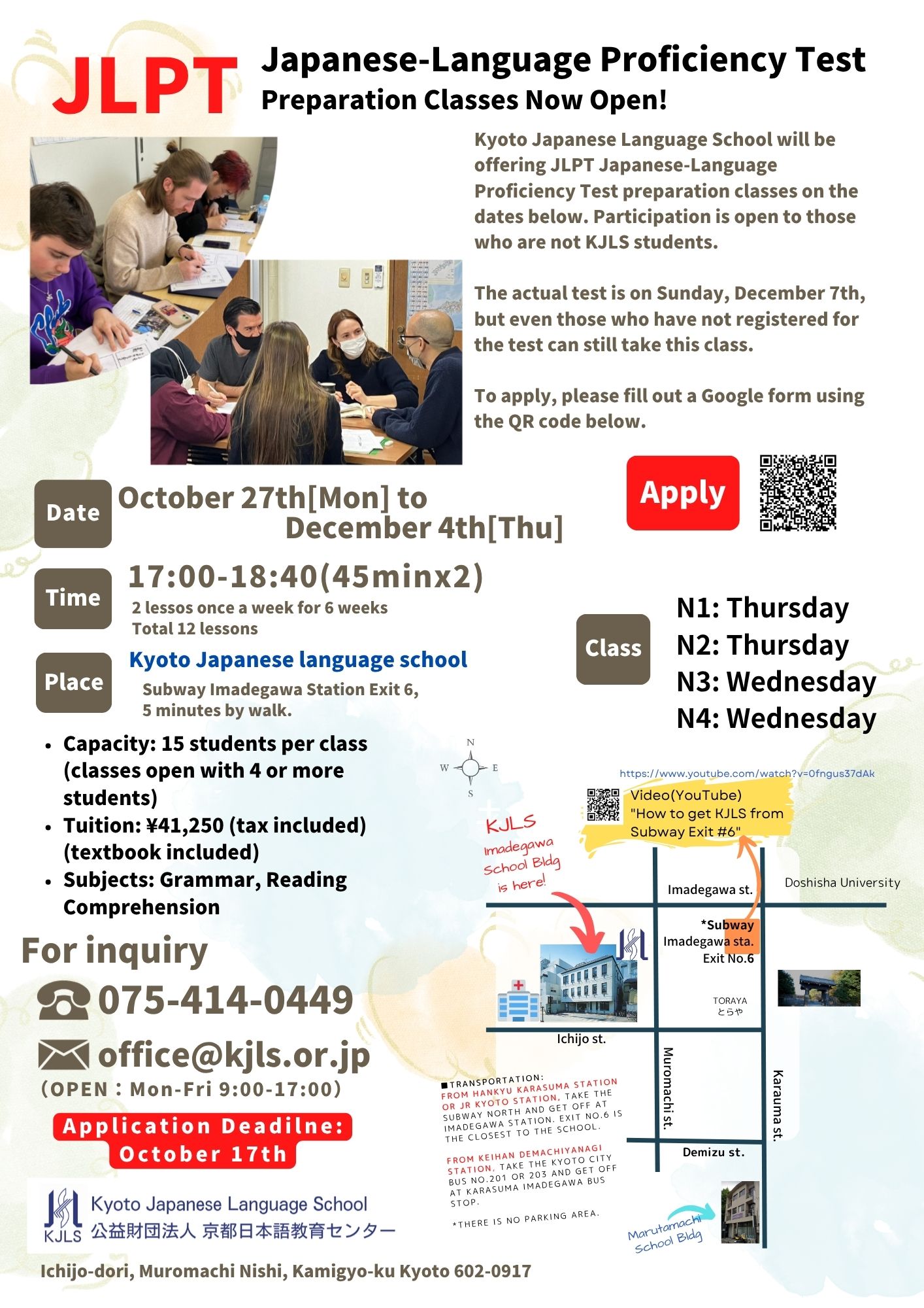 교토 일본어 학교에서는 일본어 능력 시험 대비 클래스 수강생을 모집 중입니다!